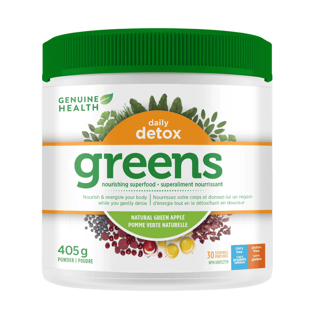 Directions To increase your energy and well-being while getting a daily detox blend. Adult Dosage Mix 1 scoop (13.5 g) in 1½ cups (375 mL) of pure water. Shake well. If you are a new user of greens+, begin with 1/3 of a scoop daily and gradually increase to a full scoop daily over a 3 week period. Take with food. Consult a health care practitioner for use beyond 3 months. greens+ daily detox contains no artificial colours, flavours or sweeteners. NON-IRRADIATED. Caution Not to be taken by children, during pregnancy, while breastfeeding, by those on medication or following a low protein diet, by those with chronic health problems, or by those who have been diagnosed with estrogen-dependent cancer unless under the recommendation of a health care practitioner. Consult a health care practitioner prior to use if you have nausea, fever, vomiting, bloody diarrhoea or severe abdominal pain. Do not use if you have gastrointestinal blockage. Discontinue use and consult a health care practitioner if symptoms of digestive upset occur, worsen or persist beyond 3 days. Use with caution if allergic to bee products. For maximum freshness, keep refrigerated after opening. Non-toxic desiccant packet inside for freshness.